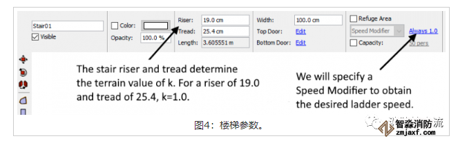 附加說(shuō)明:在此示例中,我使用了樓梯速度修改器來(lái)控制梯子速度。一種替代方法是在乘員Profile中更改樓梯的速度/密度曲線。這樣做的優(yōu)點(diǎn)是允許單個(gè)輪廓代表不同的爬升和下降速度。它的缺點(diǎn)是也會(huì)影響普通樓梯的速度。