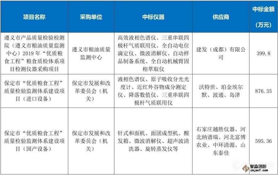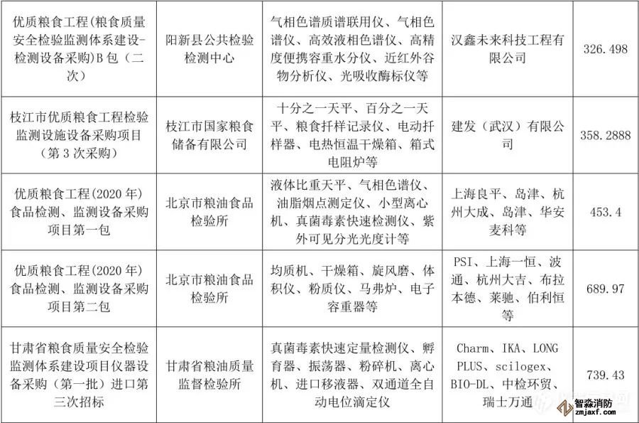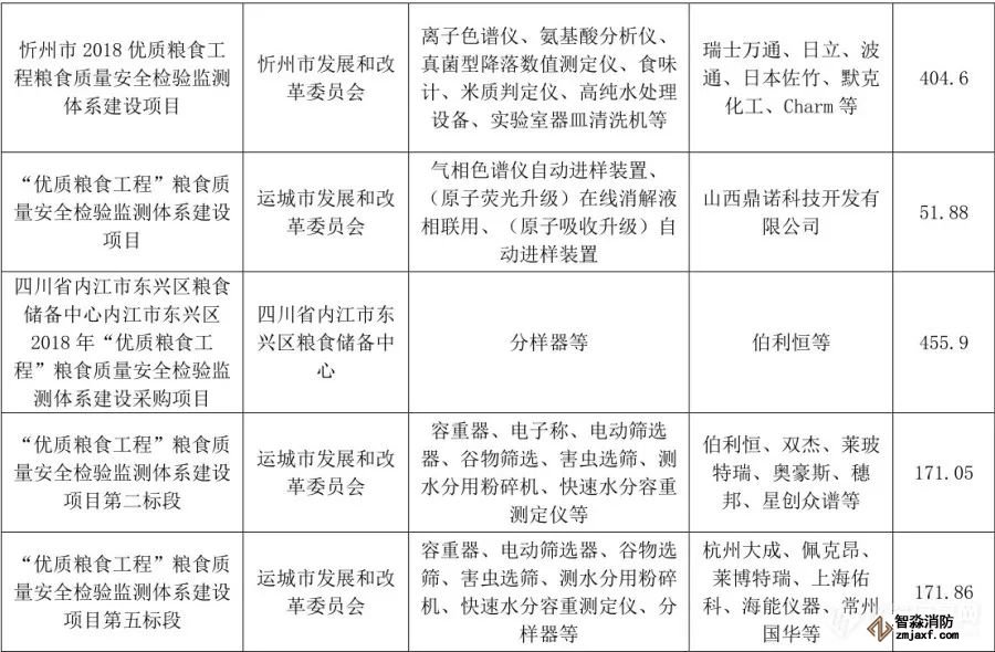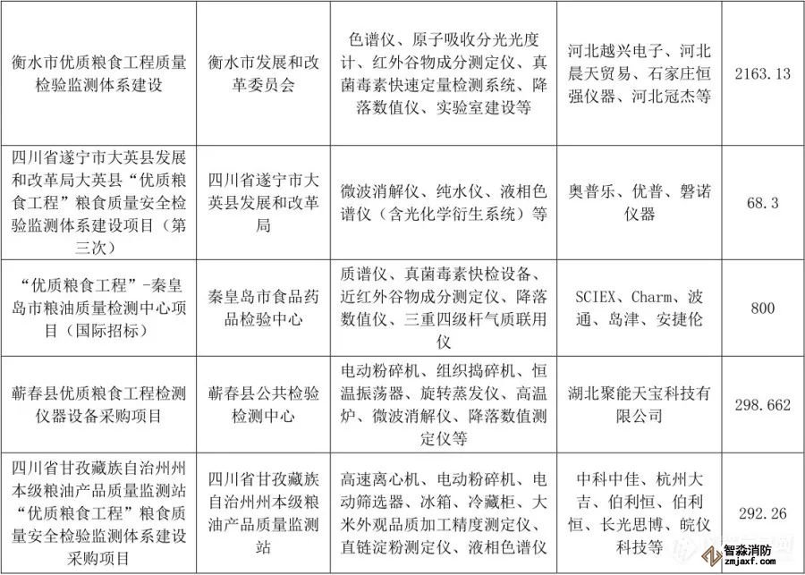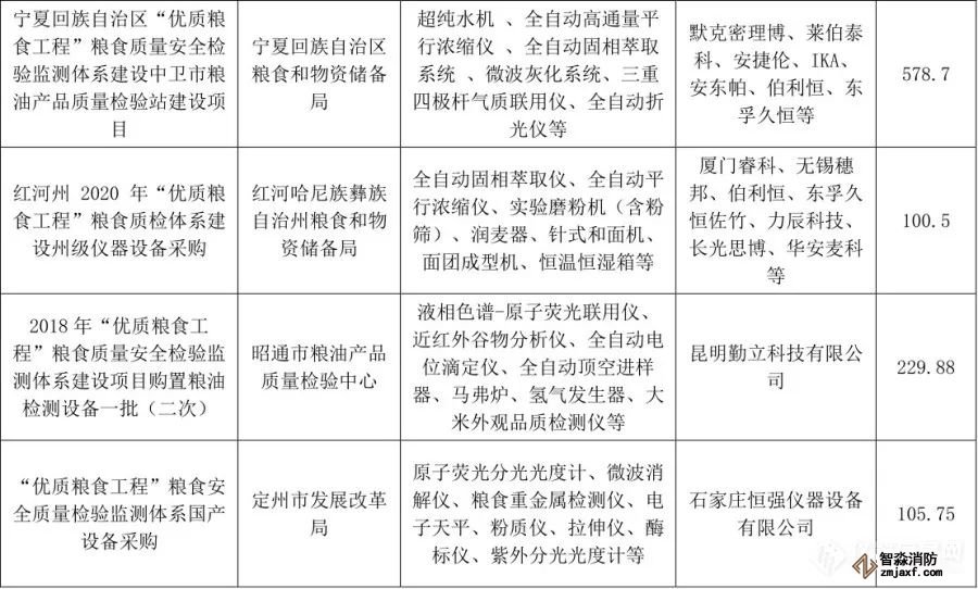 “優(yōu)質(zhì)糧食工程”儀器相關(guān)中標(biāo)項(xiàng)目列表(1月1日至6月30日)