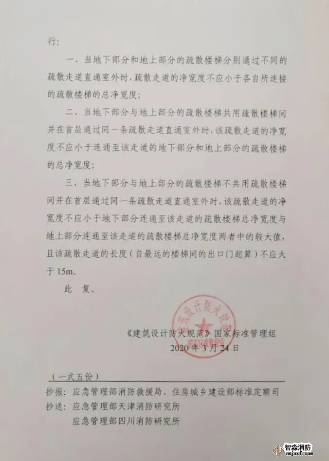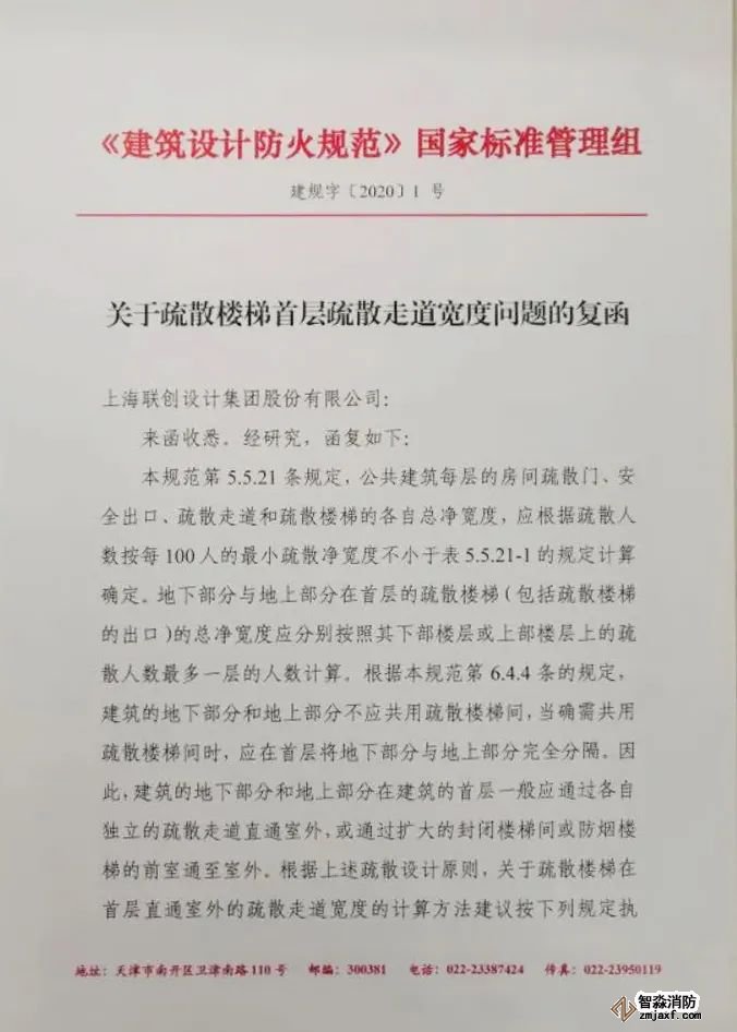 關(guān)于疏散樓梯首層疏散走道寬度問題的復函