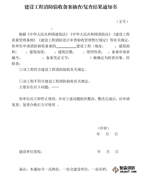 消防設(shè)計審查驗收主管部門應當自收到書面申請之日起七個工作日內(nèi)進行復查,并出具復查意見。復查合格后方可使用建設(shè)工程。