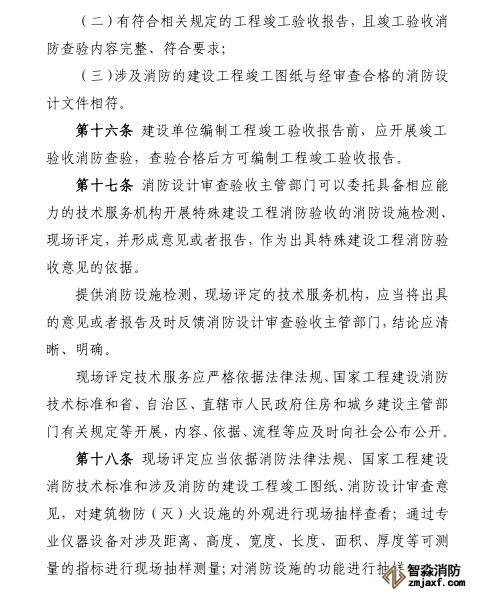 第三十條 消防設(shè)計審查驗收主管部門應當自受理消防驗收申請之日起十五日內(nèi)出具消防驗收意見。對符合下列條件的,應當出具消防驗收合格意見: