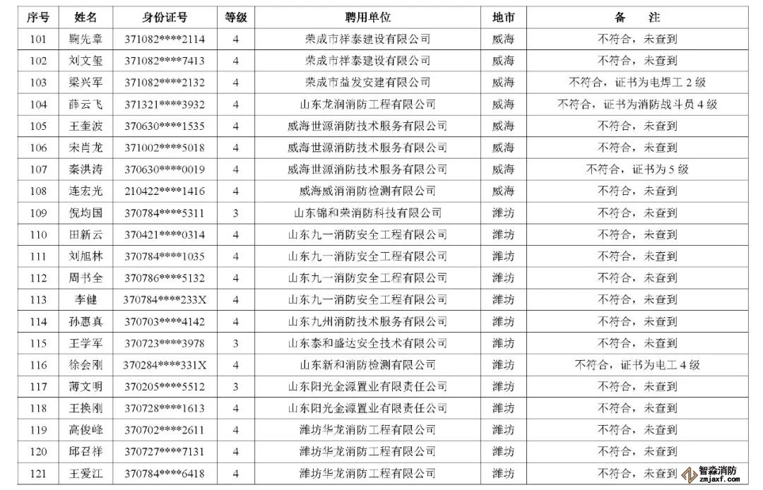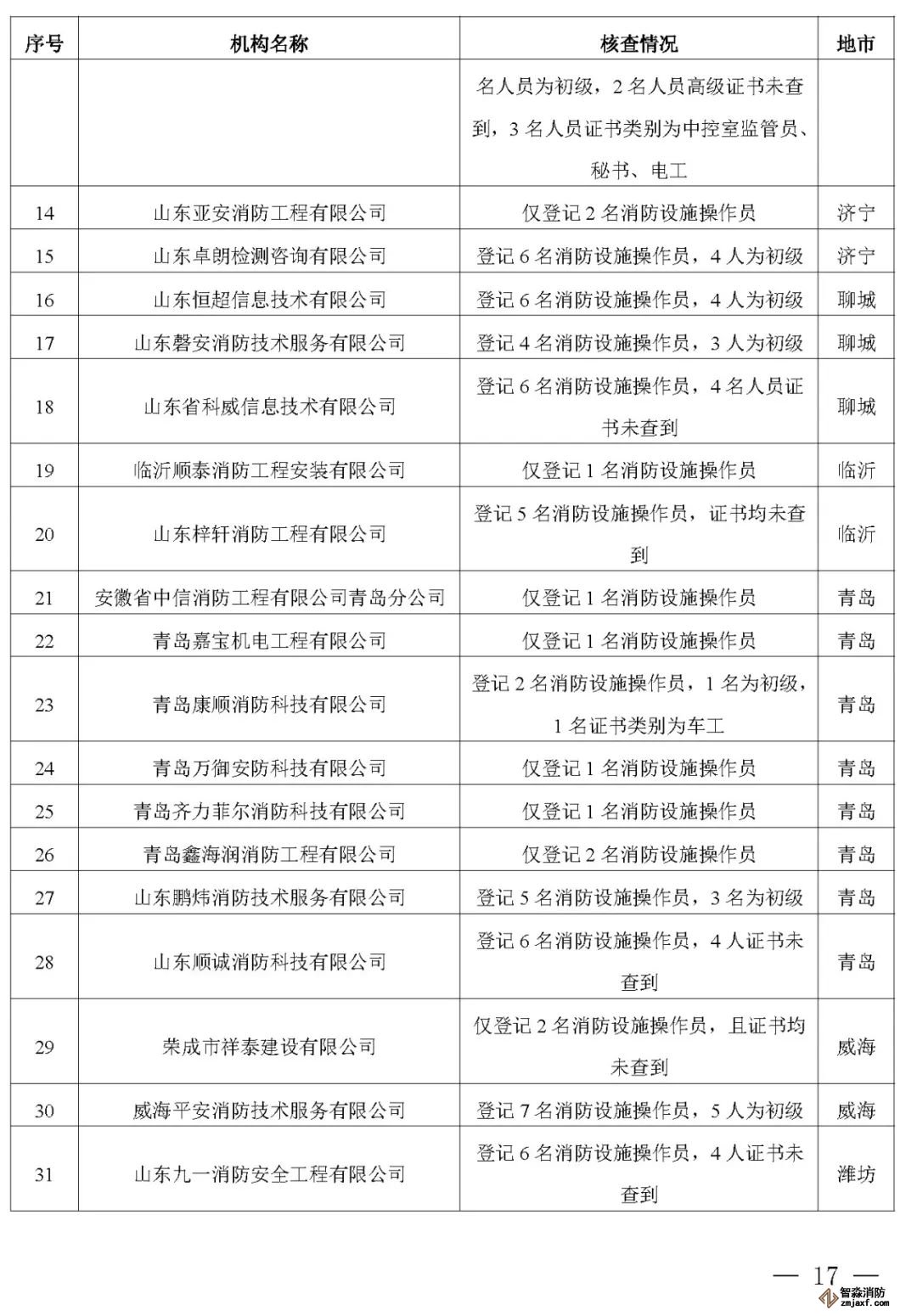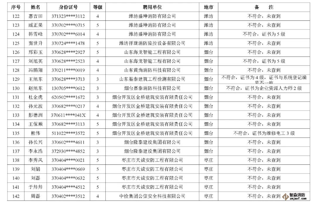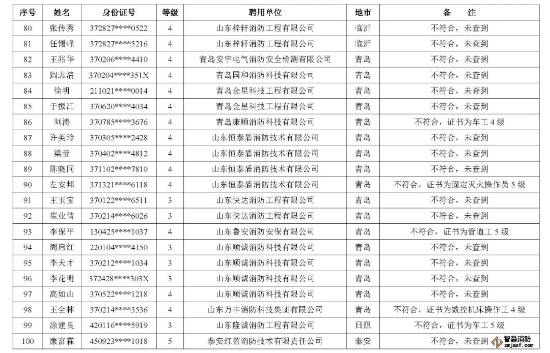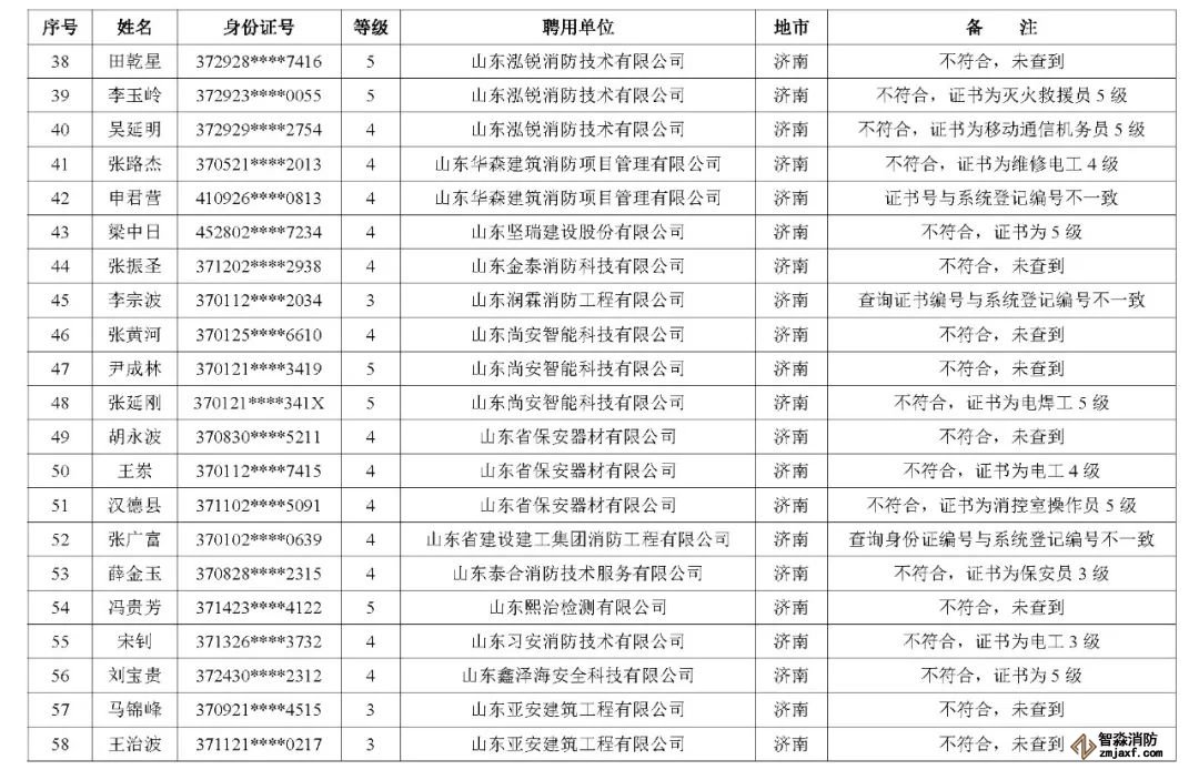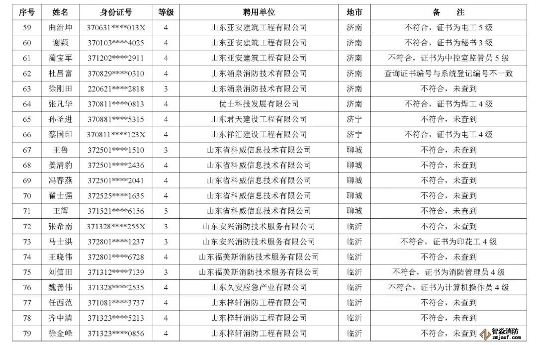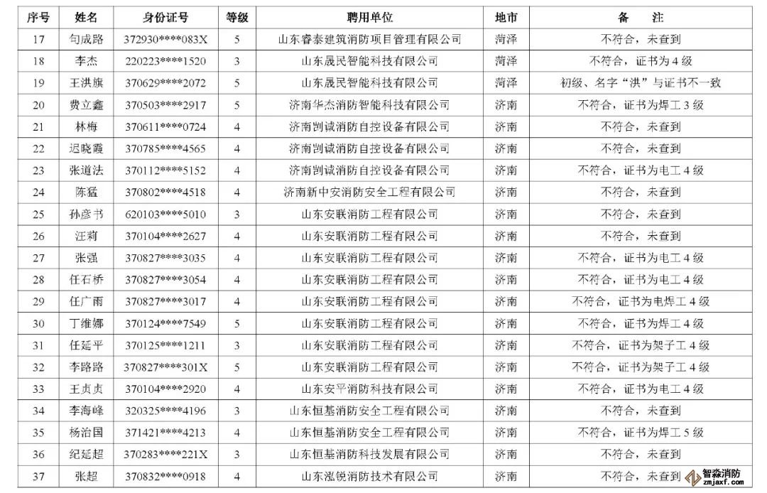 山東:消防技術(shù)服務(wù)機(jī)構(gòu)從業(yè)人員資格核查情況通報(bào)