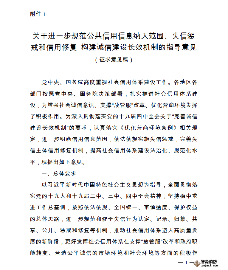 附件:1. 關(guān)于進(jìn)一步規(guī)范公共信用信息納入范圍、失信懲戒和信用修復(fù) 構(gòu)建誠信建設(shè)長效機(jī)制的指導(dǎo)意見(征求意見稿)