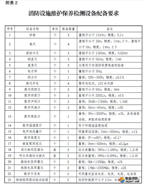 消防設(shè)施維護(hù)保養(yǎng)檢測(cè)設(shè)備配備要求