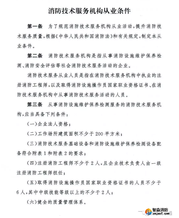 消防技術(shù)服務(wù)機(jī)構(gòu)從業(yè)條件