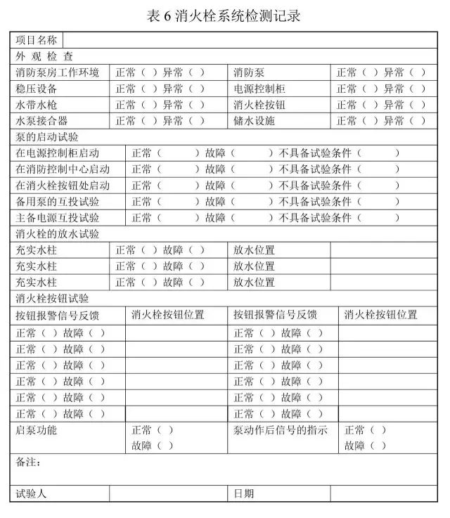 (1)外觀檢測(cè)。檢測(cè)室內(nèi)外消火栓給水管道、消防水池/水箱/穩(wěn)壓裝置、消火栓水槍及水帶、消火栓按鈕、消防水泵及各類管網(wǎng)閥門等是否正常。