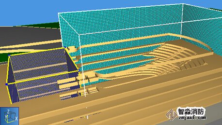 -PyroSim提供的模型建立主要為建立網(wǎng)格、材料定義等過(guò)程,然后得到一個(gè)完整正確的消防模擬模型。