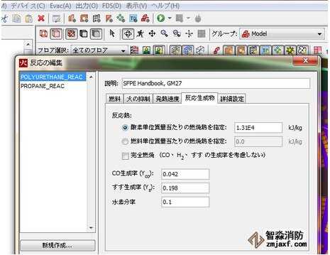-PyroSim程序中能很方便地輸入已知的材料燃燒反應(yīng)。