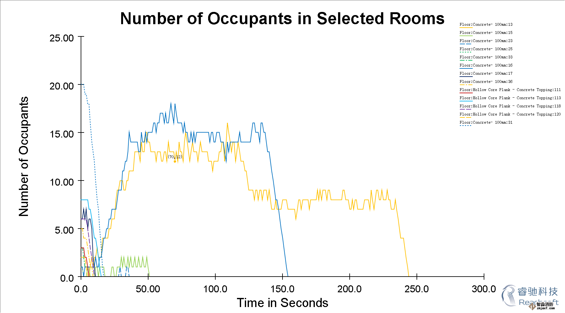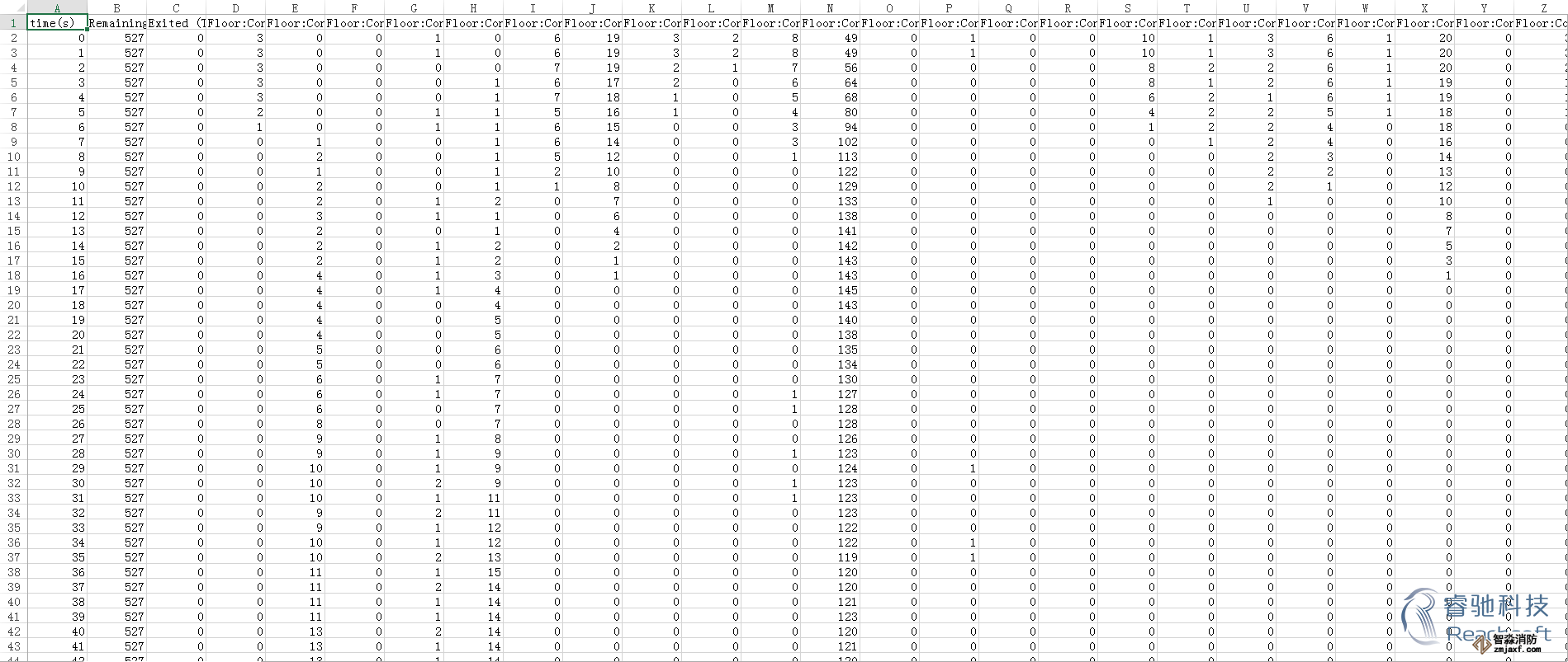 -除了3D模擬視圖,Pathfinder還提供了2D時(shí)間關(guān)系曲線圖的CSV文件和記錄樓層疏散時(shí)間和出入口流通率的文本文件。